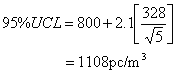 0.3μm和0.5μm计算出的浓度值均低于D.1.3中确定的限值,满足了等级的第一部分(B.6.1)要求,因此可以按附录C进行95%的置信上限的计算。