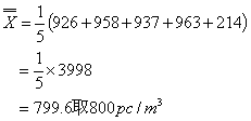 按原始数据(D.1.6)计算粒子pc/m3,Xi :