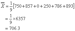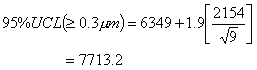 按公式(C.4)计算95%置信上限(UCL)(见C.3.4).单个平均值采样点数m=9,取自表C.1中的分布系数t=1.9。
