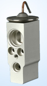 器,一个连接蒸发器进口;另外两个接口,一个连接蒸发器出口,一个连接压缩机进口。感温包直接处在蒸发器出口的制冷剂气流中。该膨胀阀由于取消了F型热力