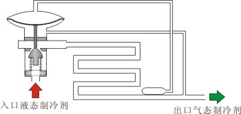 发器的出口完全为气态制冷剂,若流量过大,出口含有液态制冷剂,可能进入压缩机产生液击;若制冷剂流量过小,提前蒸发完毕,造成制冷不足;