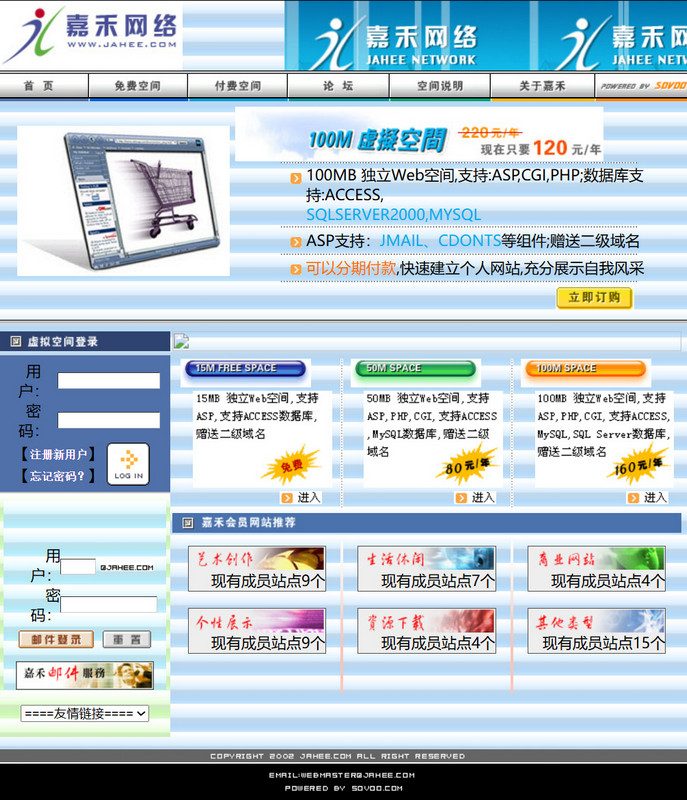 2003年还在上大学的自己很喜欢鼓捣计算机,所以自然而然的接触到了免费空间,特别是能支持ASP的免费空间,嘉禾网络是当时极少的国内能稳定提供免费空间的公司。所以在这里缅怀一下,因为这家公司已经不存在了。
